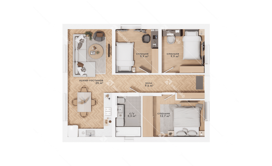 Проект одноэтажного дома Эколайф 73
