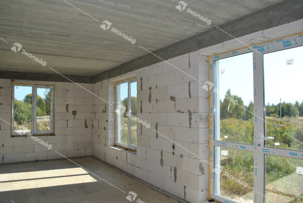 Двухэтажный дом построенный по проекту Эколайф-143, выполнен из газобетона в новом микрорайоне Рождественское. Параметры дома - 9.4 м2 на 9.7 м2.