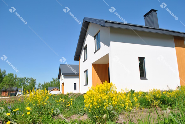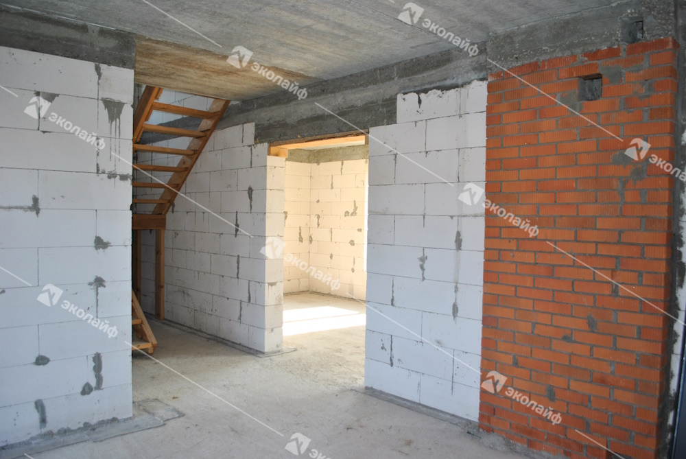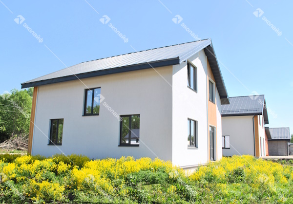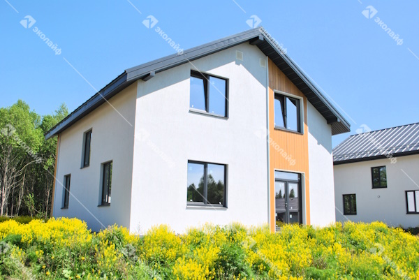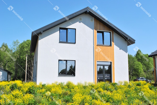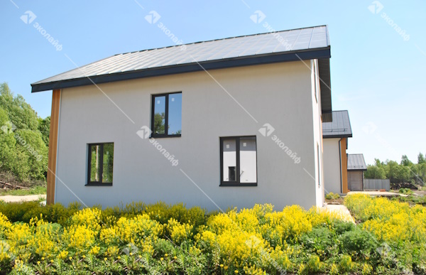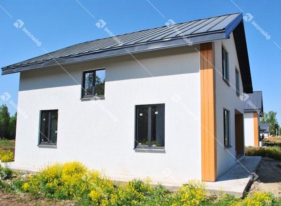 Двухэтажный дом построенный по проекту Эколайф-143, выполнен из газобетона в поселке Садовый. Параметры дома - 9.4 м2 на 9.7 м2.