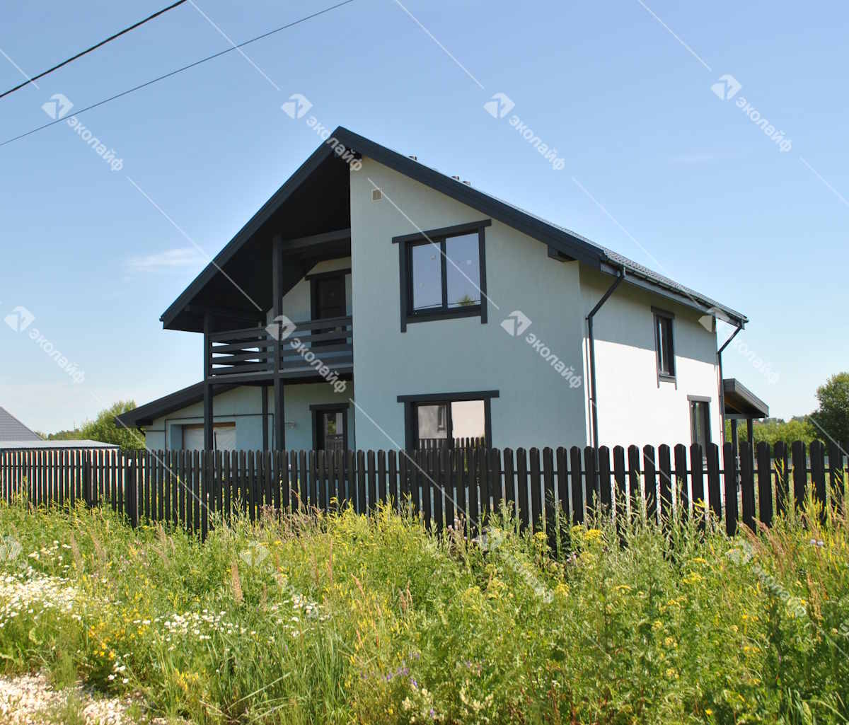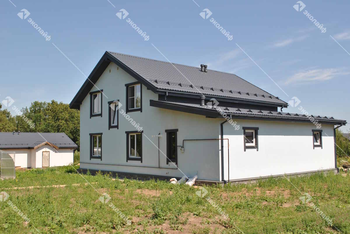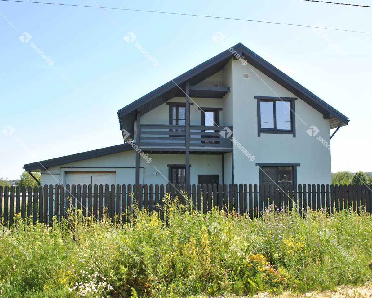 Двухэтажный дом для большой семьи построен на участке 10 соток в коттеджном поселке Бородино. Это двухэтажный коттедж по проекту «Благо-115» с гаражом и просторным балконом.