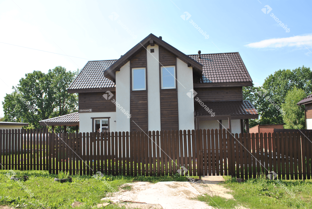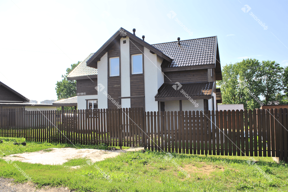 Двухэтажный дом, построенный по проекту «Эколайф-155», расположен в посёлке Благовещенское и выполнен из газобетона. Общие габариты дома — 10,5 × 8,5 м. Просторная планировка и большая терраса делают его идеальным решением для комфортной жизни большой семьи.