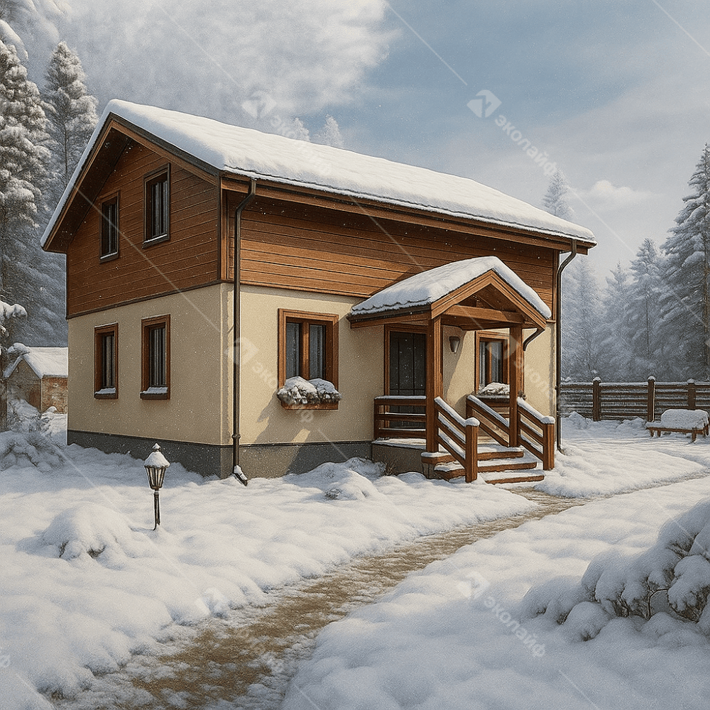 Комплектация дома "Базовая + фасад" включает в себя полный закрытый теплый контур + отделка фасада: