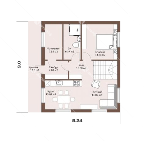 Дом подходит для круглогодичного проживания для семьи из 3-6 человек. Проект скорректировать по Вашему запросу.