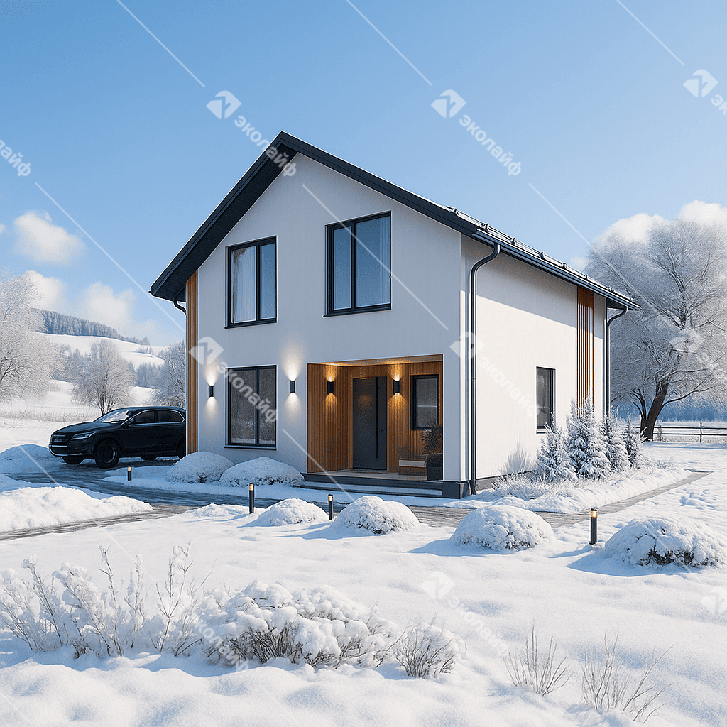 Комплектация дома "White Box" включает в себя полный закрытый теплый контур + отделка фасада + коммуникации + предчистовая отделка:
