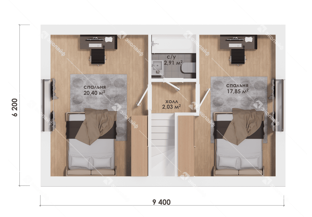Готовый проект двухэтажного дома Эколайф-94